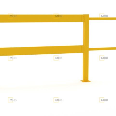 Ocelové zábradlí vymezuje prostor pro pohyb hydraulické manipulační techniky, paletových vozíků a rudlů. Slouží také k ochraně pěších zón průmyslového areálu.