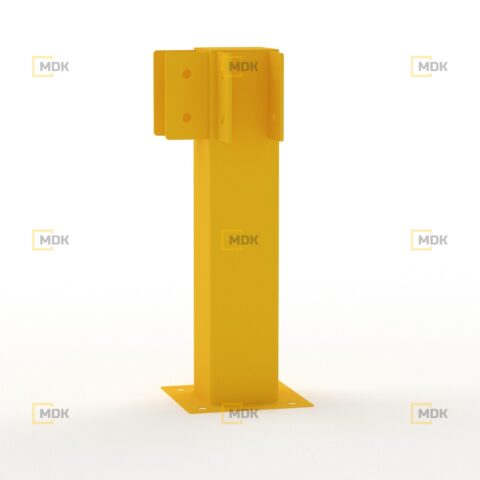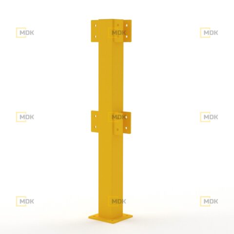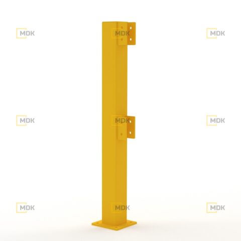 Ocelové zábradlí je vyrobeno z oceli S235. Povrchová úprava je řešena práškovou barvou. Žlutá dopravní barva RAL1023 zvyšuje viditelnost zábradlí a varuje před překážkami, což přispívá k vyšší bezpečnosti. Ocelové patky zábradlí jsou vyrobeny z plechů o tloušťce 10 mm. Kotevní otvory Ø 14 mm. Zábradlí má černé reflexní šrafování.